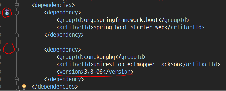 왼쪽에 아이콘이 뜨는지의 여부로 version을 관리하지 않는 dependency라는 것을 알 수 있다. 이 경우 어떤 버전을 쓰게될지 알 수 없기 때문에 직접 명시해주는 것이 좋다.