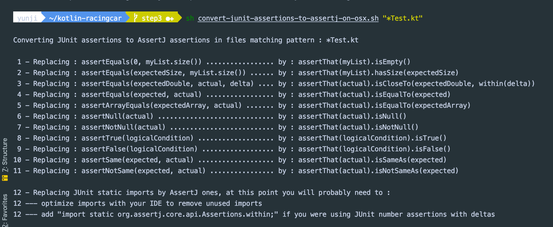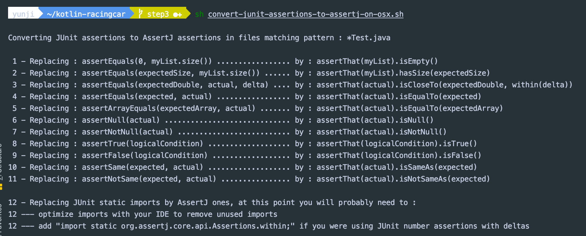 assertj-core에서 제공하는 쉘 스크립트를 이용해서 한방에 변환해보자.