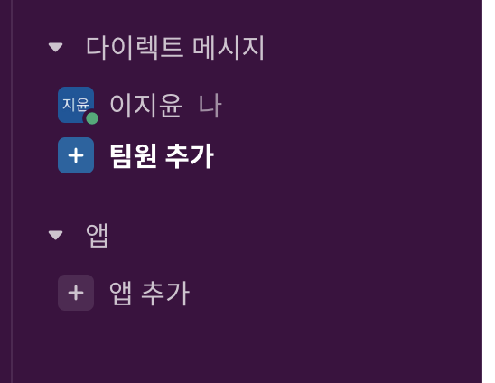 이제 Slack 데스크탑 앱에서 '앱 추가'를 클릭하고 자기가 만든 앱 이름을 검색해서 추가한다.