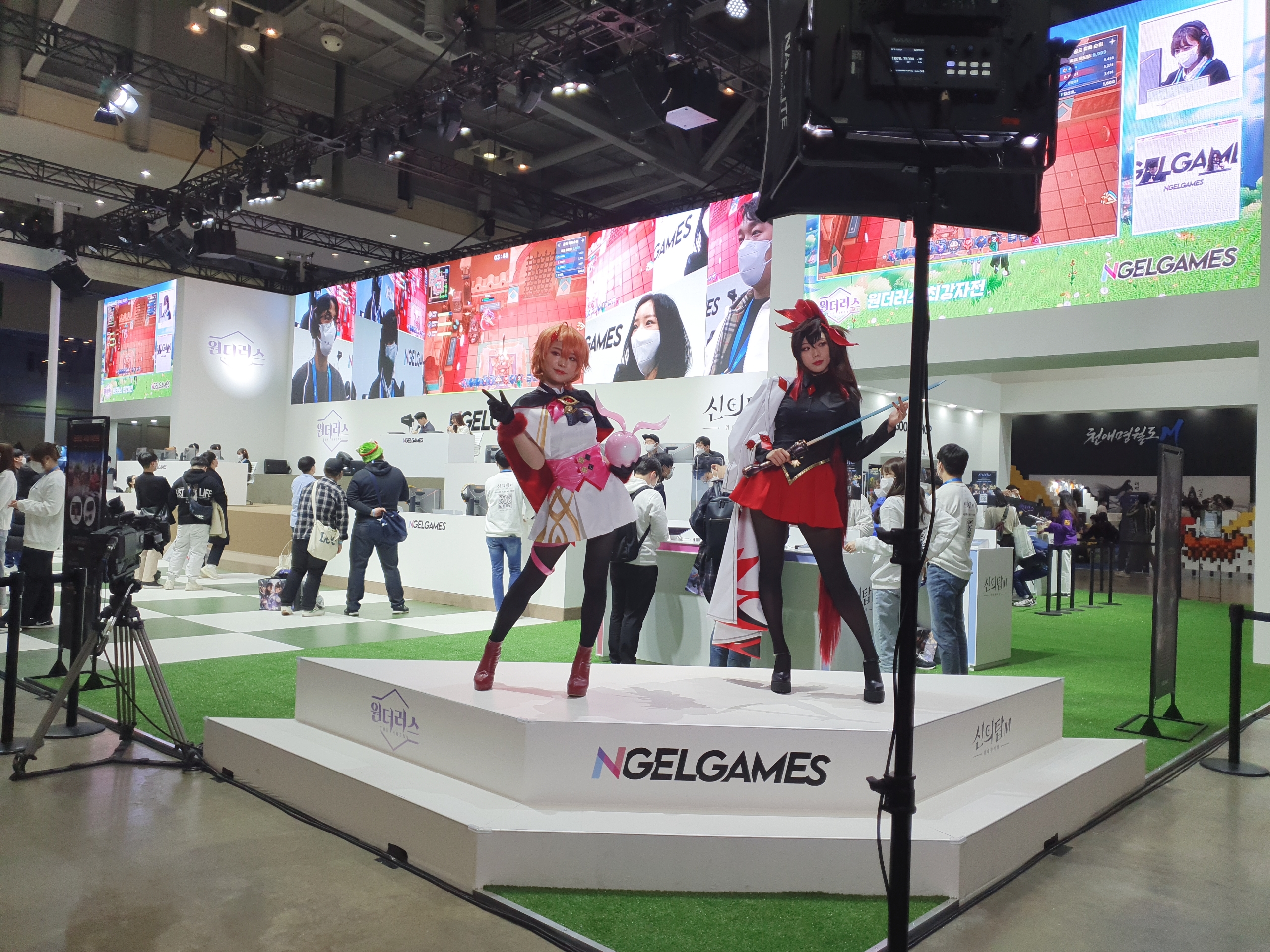 몇몇 게임은 코스프레를 한 모델 분들이 부스 앞에 서계셨다. 이런 전문적인 코스프레를 실제로 본건 처음이다. 모델 분들이 다들 너무 이쁘시고... 수십대의 새카만 대포카메라 앞에서 자연스럽게 웃으며 포즈를 취하는 모습을 보고 대단하다고 생각했다.